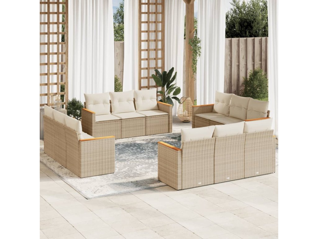 12dílná zahradní sedací souprava s poduškami béžová polyratan 3258236