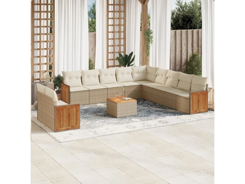 12dílná zahradní sedací souprava s poduškami béžová polyratan 3260217
