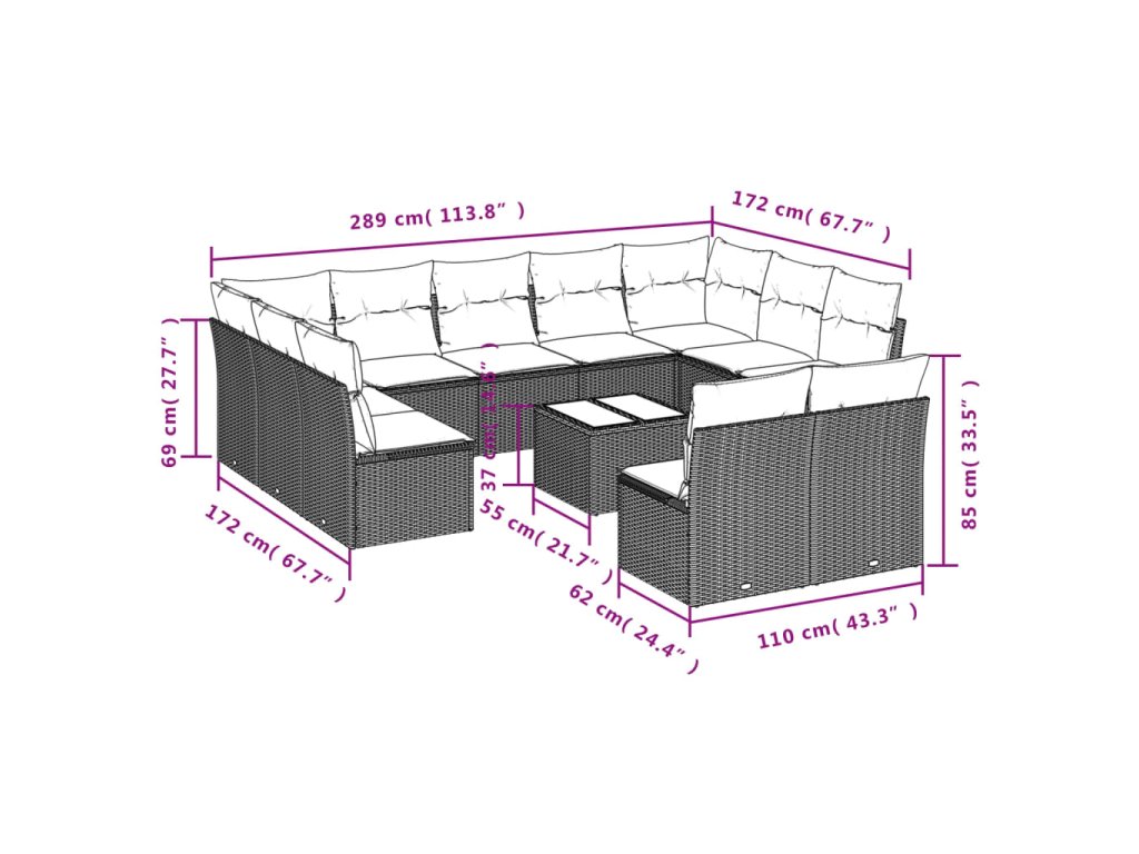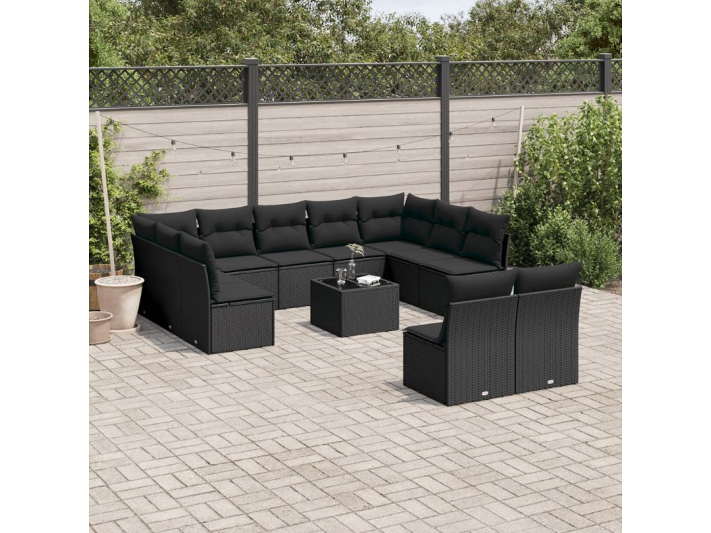 12dílná zahradní sedací souprava s poduškami černá polyratan 3218355