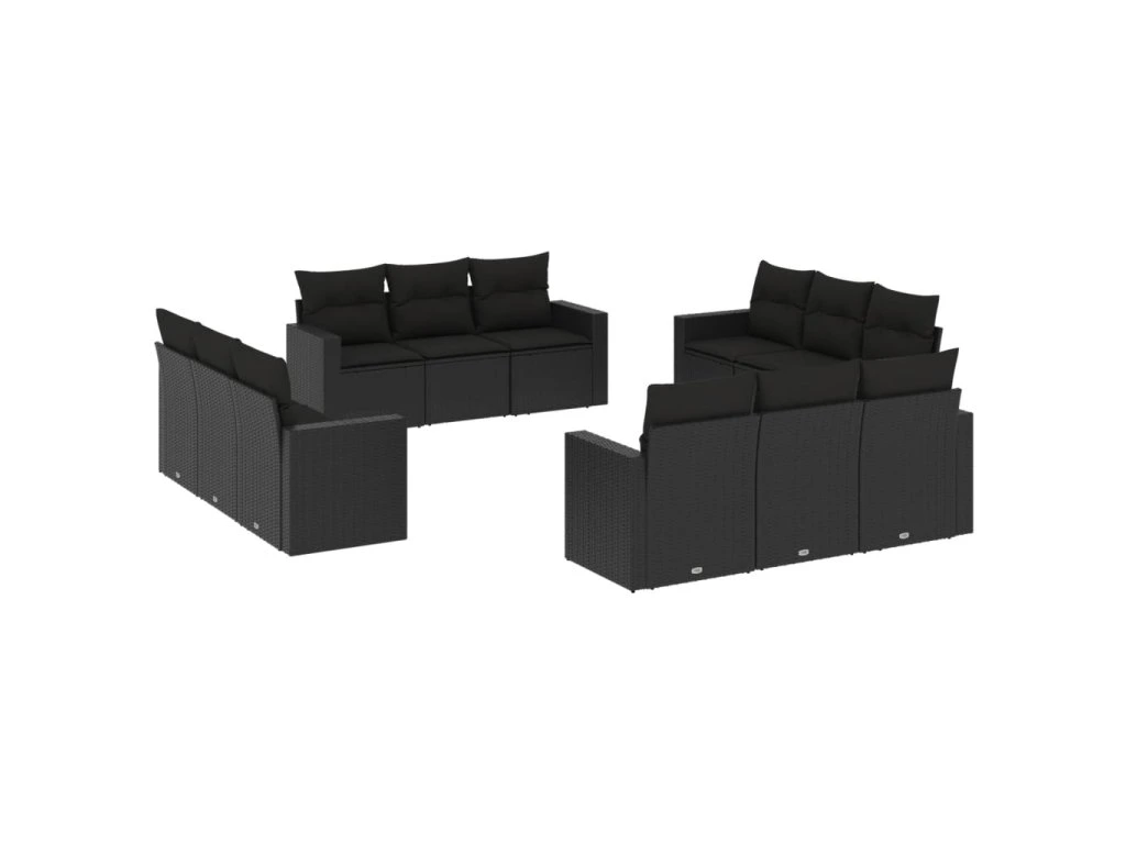 12dílná zahradní sedací souprava s poduškami černá polyratan 3218755
