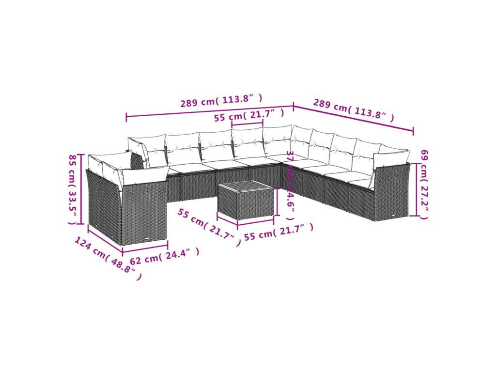 12dílná zahradní sedací souprava s poduškami černá polyratan 3223725
