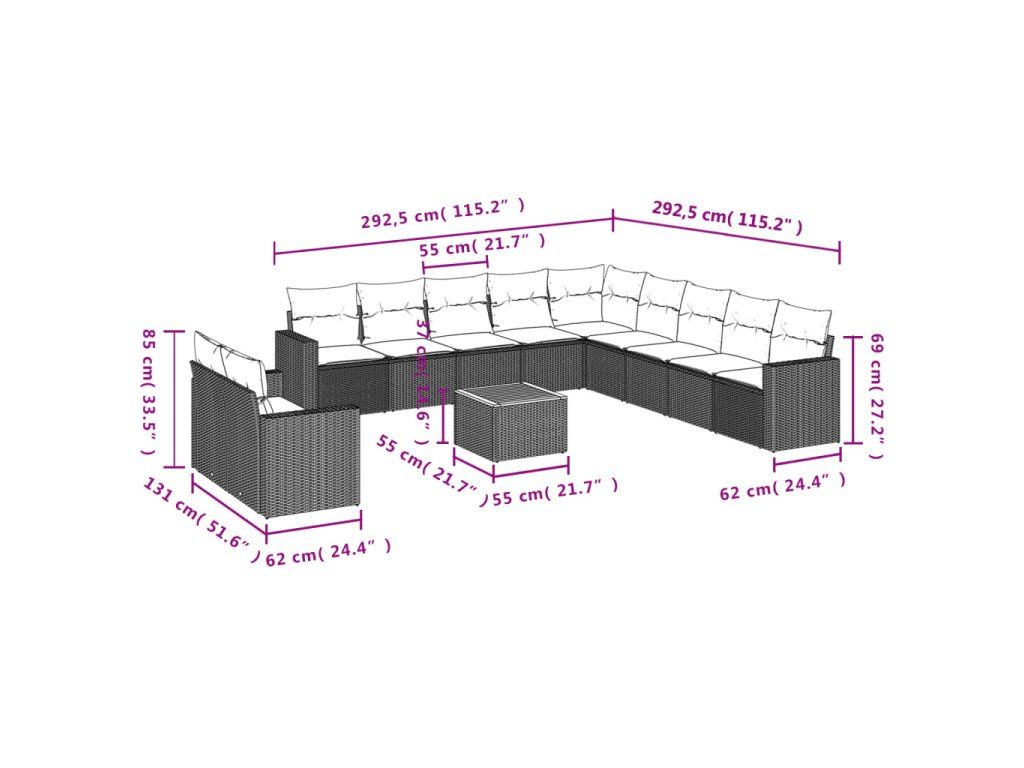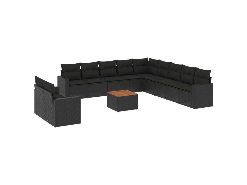 12dílná zahradní sedací souprava s poduškami černá polyratan 3224200