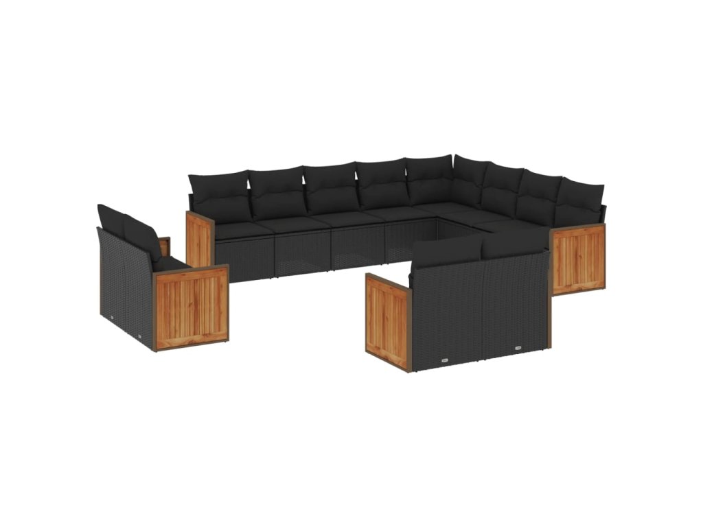 12dílná zahradní sedací souprava s poduškami černá polyratan 3228190