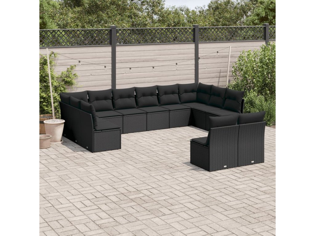 12dílná zahradní sedací souprava s poduškami černá polyratan 3250204