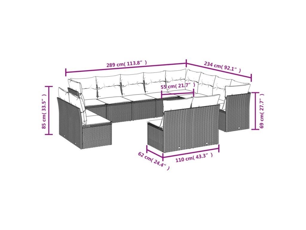 12dílná zahradní sedací souprava s poduškami černá polyratan 3250305