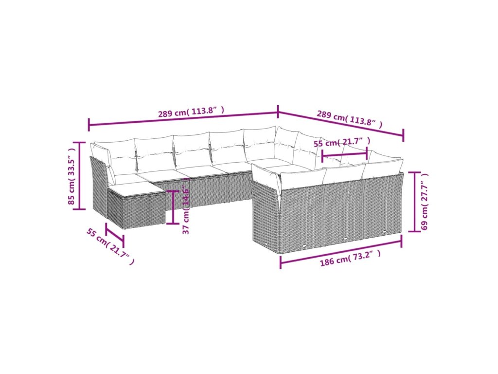 12dílná zahradní sedací souprava s poduškami černá polyratan 3250465