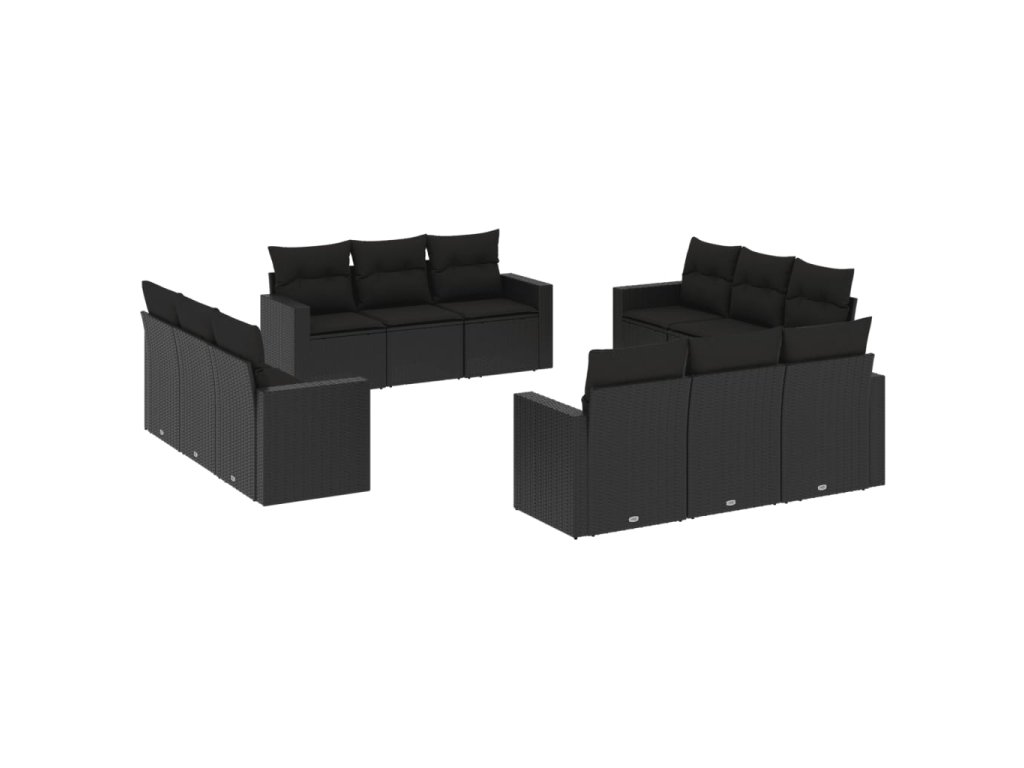 12dílná zahradní sedací souprava s poduškami černá polyratan 3251102