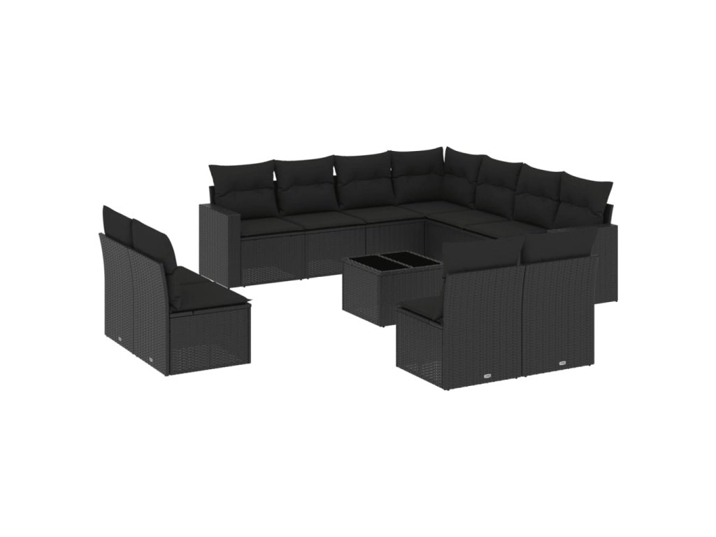 12dílná zahradní sedací souprava s poduškami černá polyratan 3251472