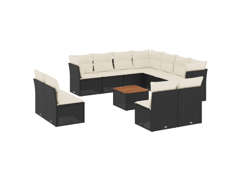 12dílná zahradní sedací souprava s poduškami černá polyratan 3256035