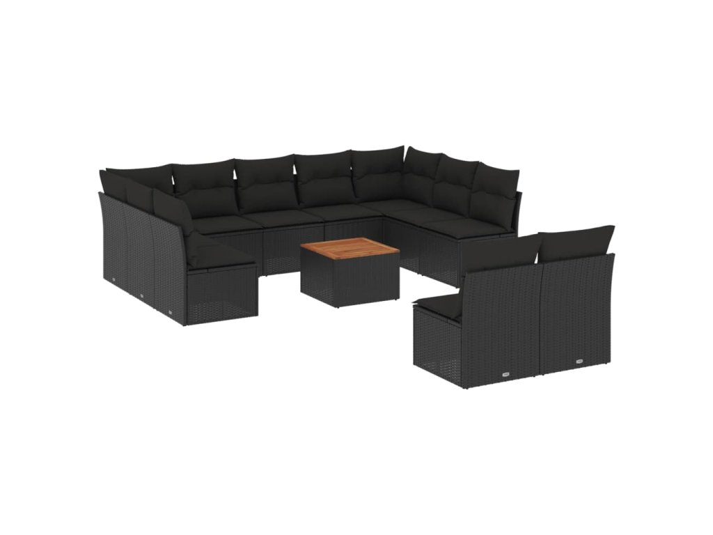 12dílná zahradní sedací souprava s poduškami černá polyratan 3256216