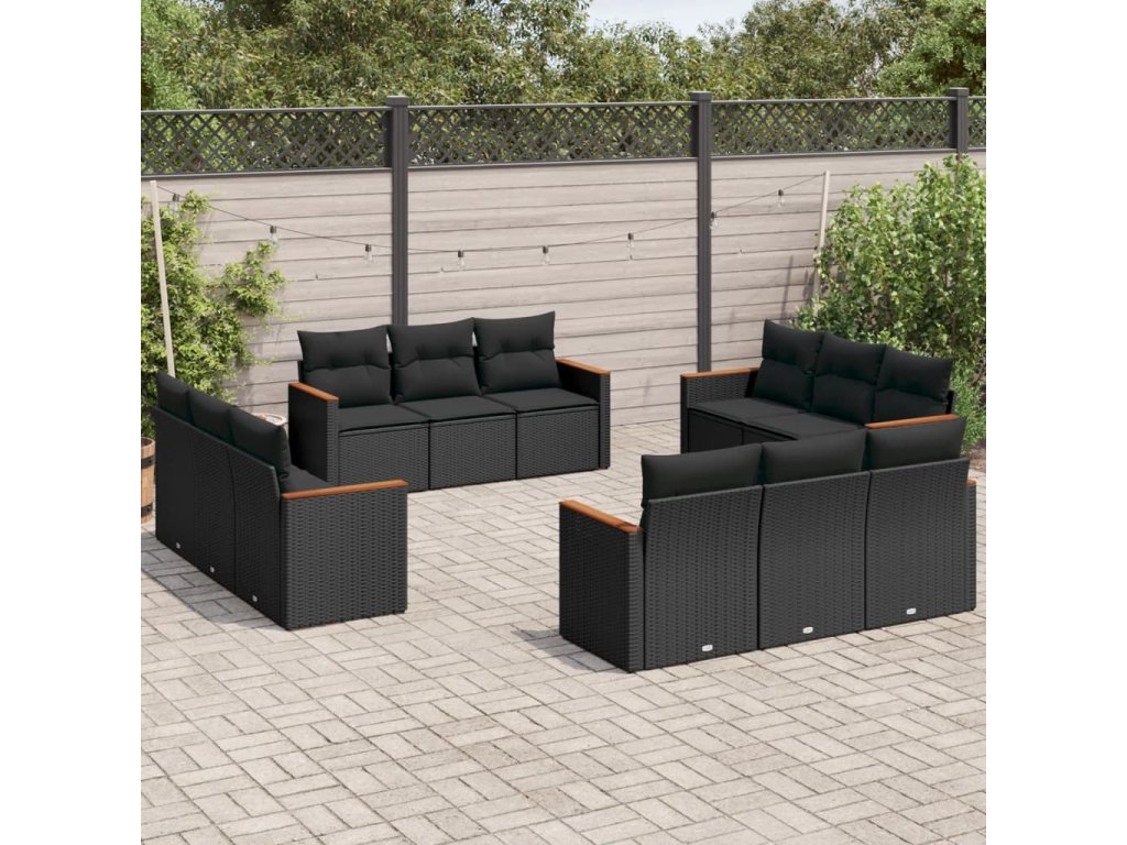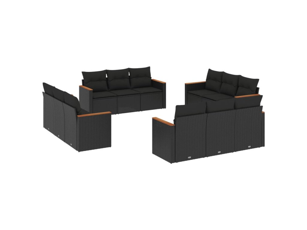 12dílná zahradní sedací souprava s poduškami černá polyratan 3258233