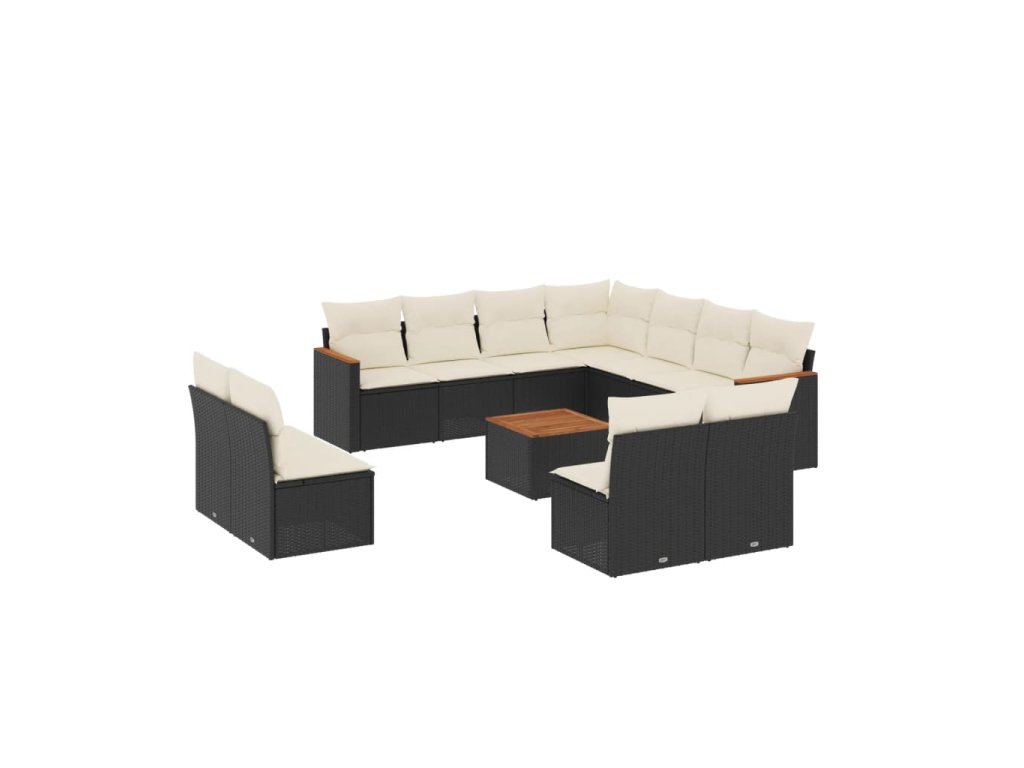 12dílná zahradní sedací souprava s poduškami černá polyratan 3258493