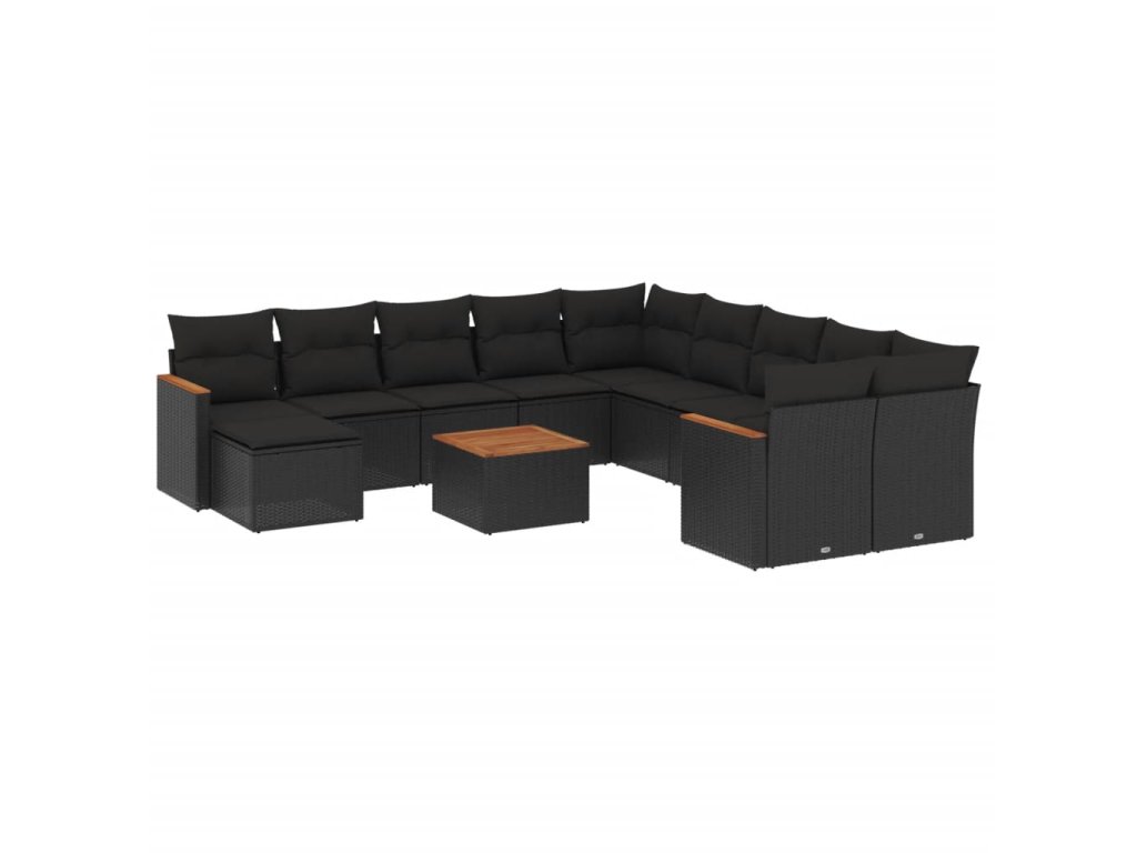 12dílná zahradní sedací souprava s poduškami černá polyratan 3258975