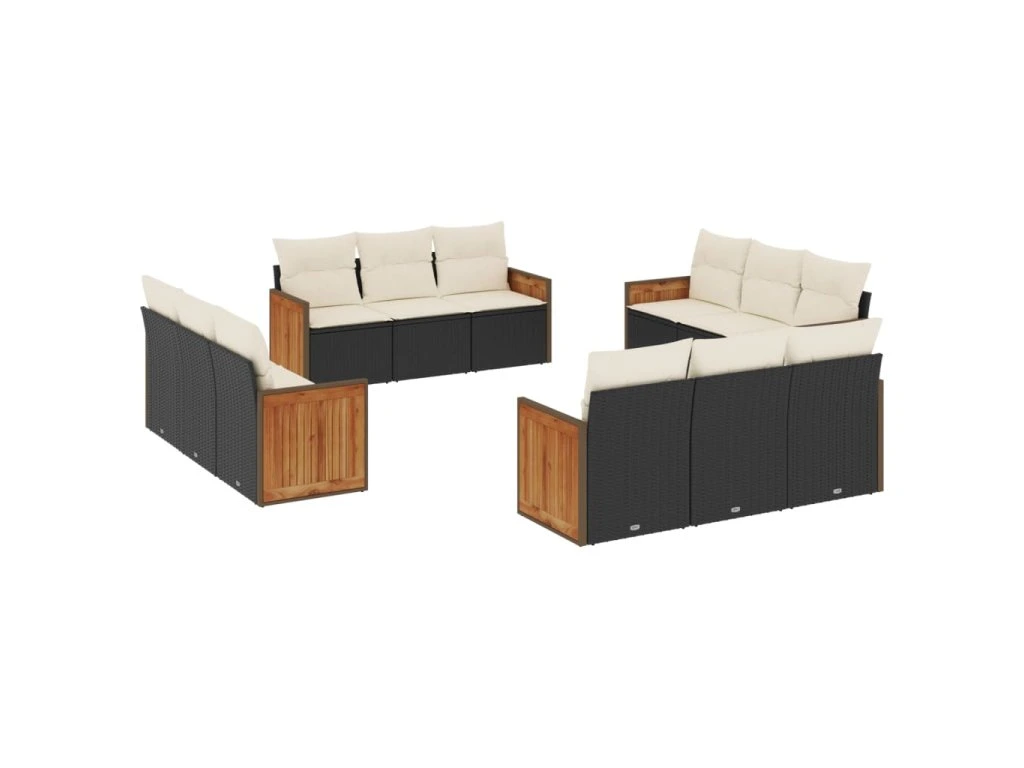12dílná zahradní sedací souprava s poduškami černá polyratan 3259914