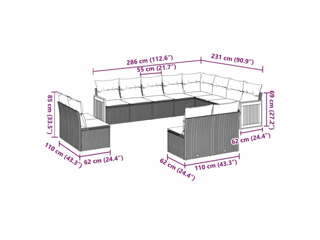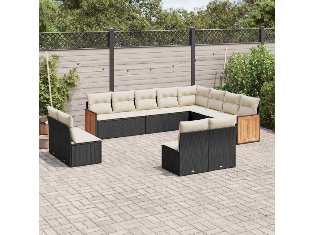 12dílná zahradní sedací souprava s poduškami černá polyratan 3260551