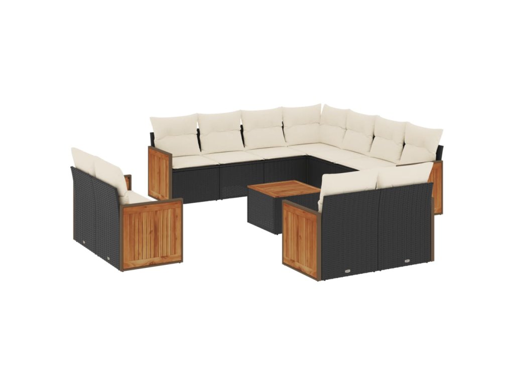12dílná zahradní sedací souprava s poduškami černá polyratan 3260586