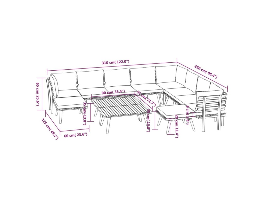 12dílná zahradní sedací souprava s poduškami masivní akácie 3087021