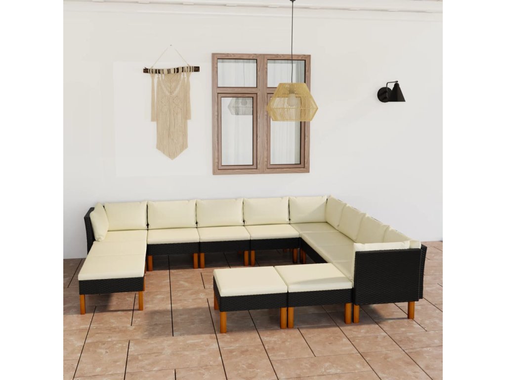 12dílná zahradní sedací souprava s poduškami polyratan černá 3059747