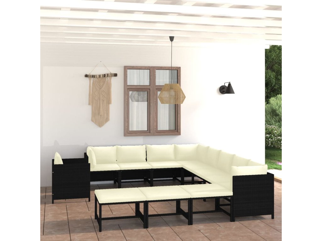 12dílná zahradní sedací souprava s poduškami polyratan černá 3059803