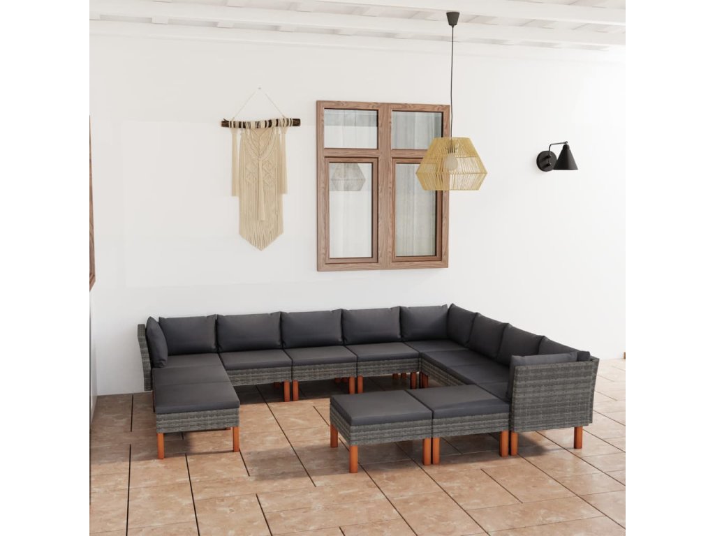 12dílná zahradní sedací souprava s poduškami polyratan šedá 3059725