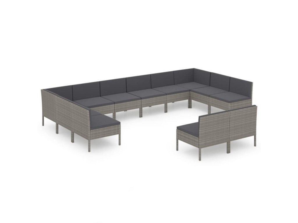 12dílná zahradní sedací souprava s poduškami polyratan šedá 3094614