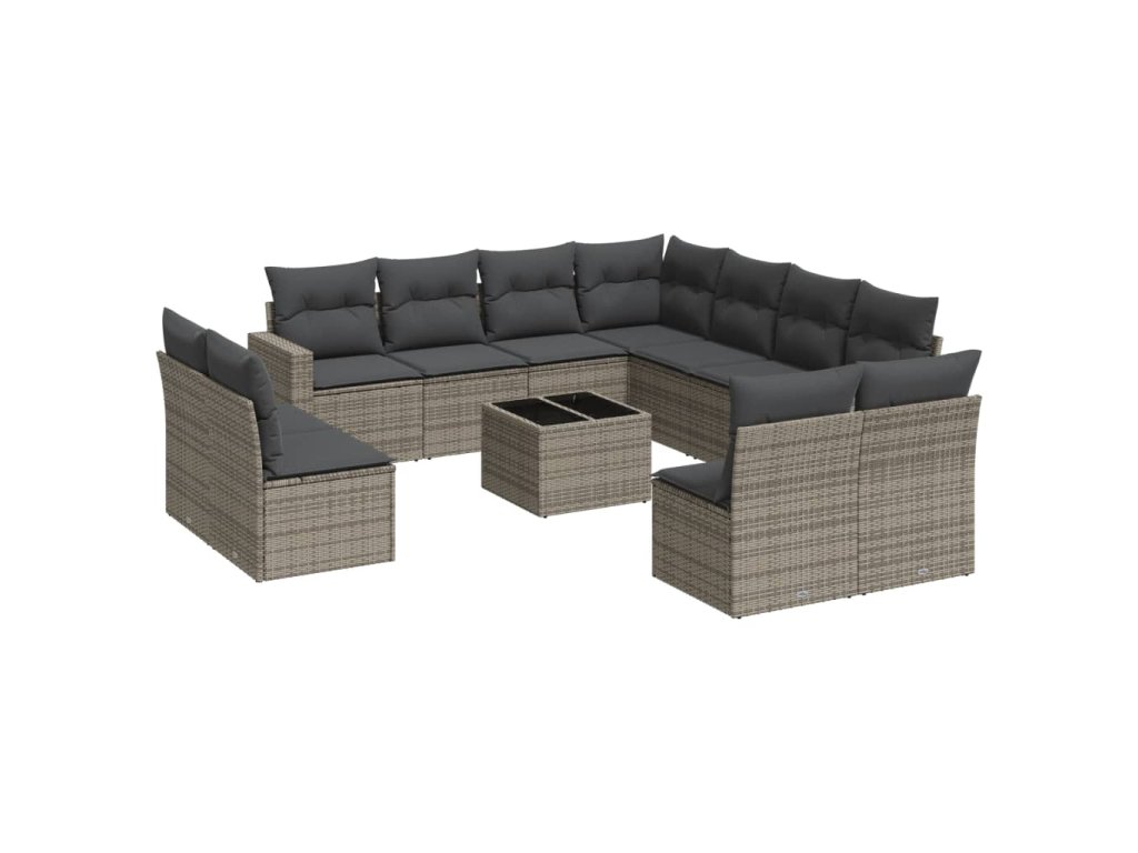 12dílná zahradní sedací souprava s poduškami šedá polyratan 3219130