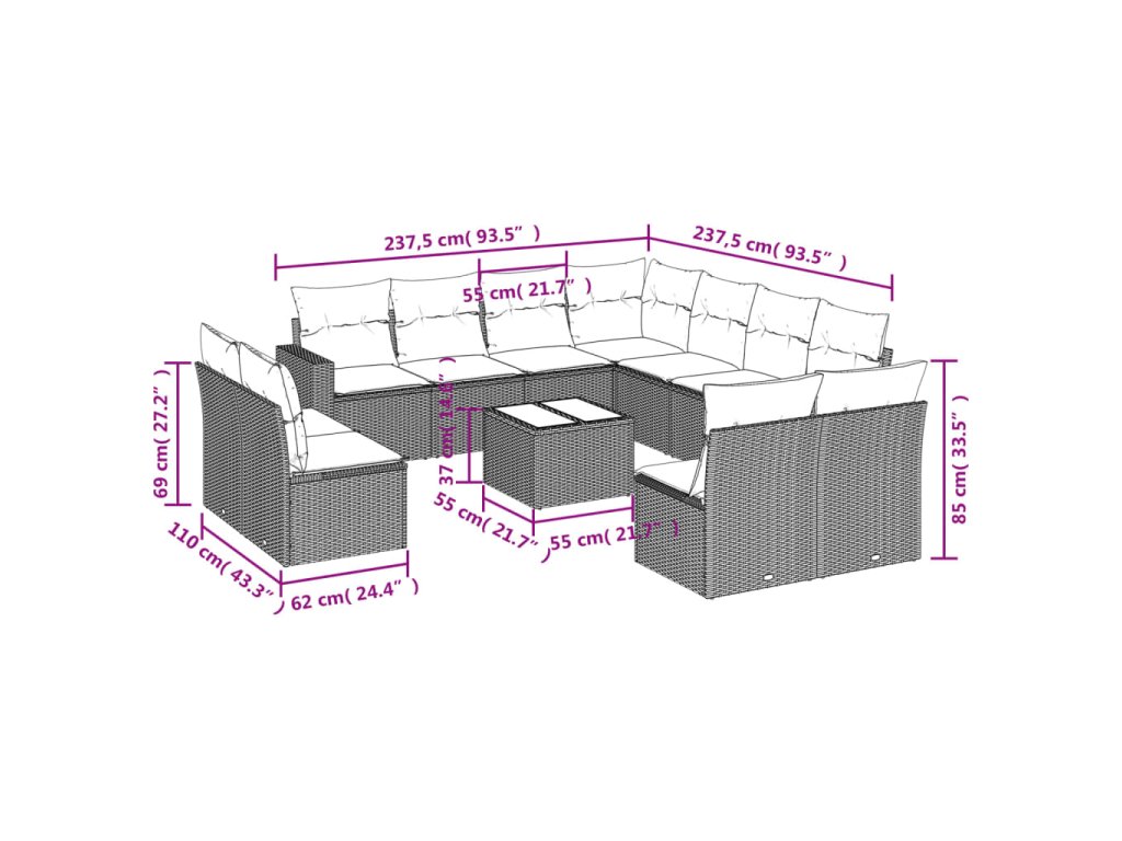 Tato zahradní sedací souprava je dokonalým doplňkem vaší zahrady, terasy nebo dvorku a poskytne vám pohodlné a příjemné místo, kde si můžete povídat s rodinou a přáteli nebo jen tak odpočívat a užívat si pobyt venku.