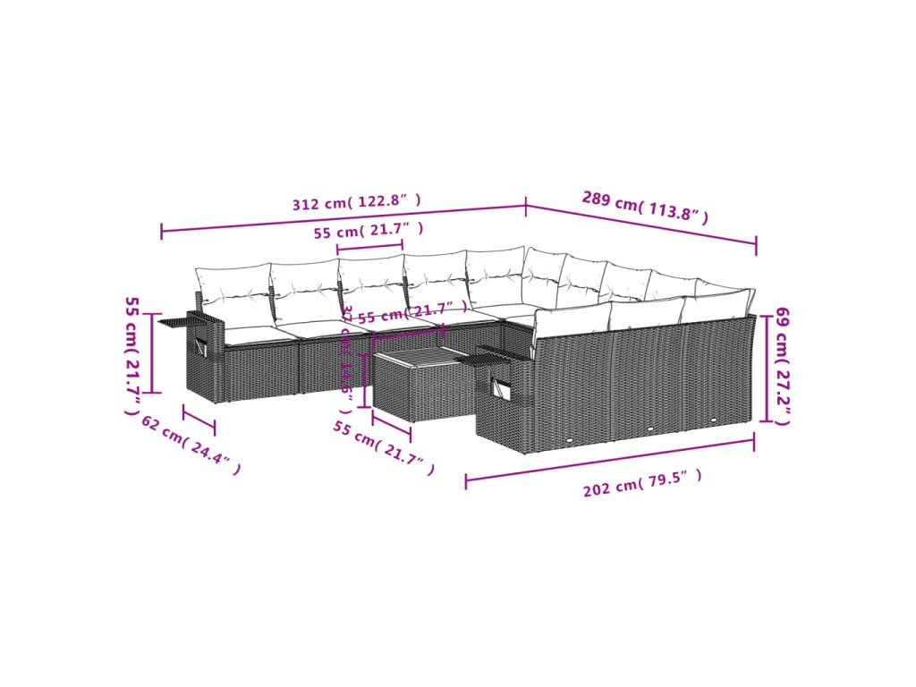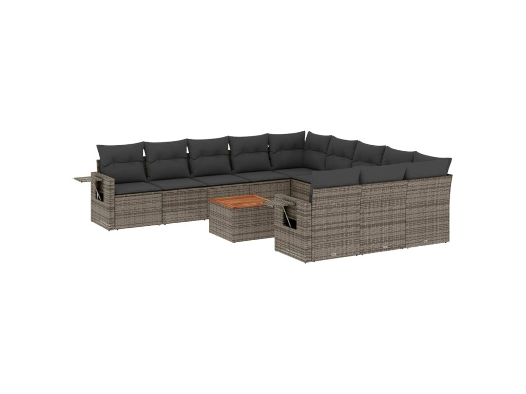 12dílná zahradní sedací souprava s poduškami šedá polyratan 3224793