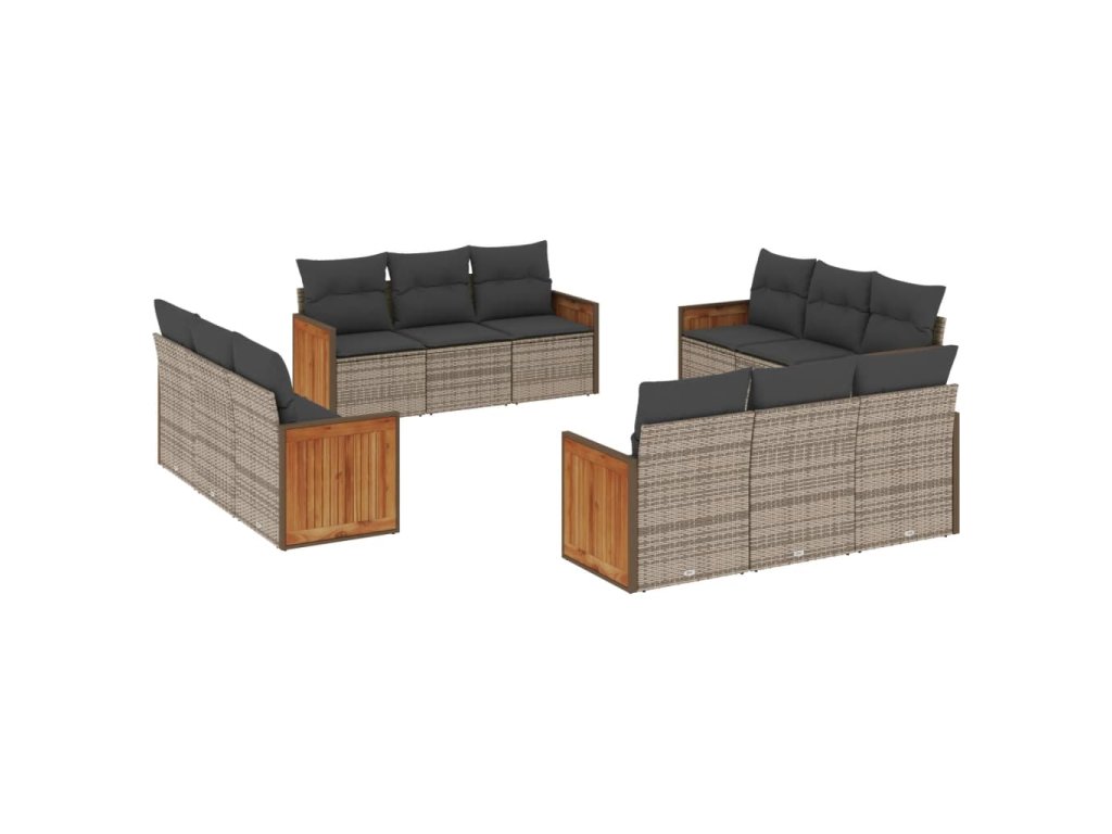12dílná zahradní sedací souprava s poduškami šedá polyratan 3227516