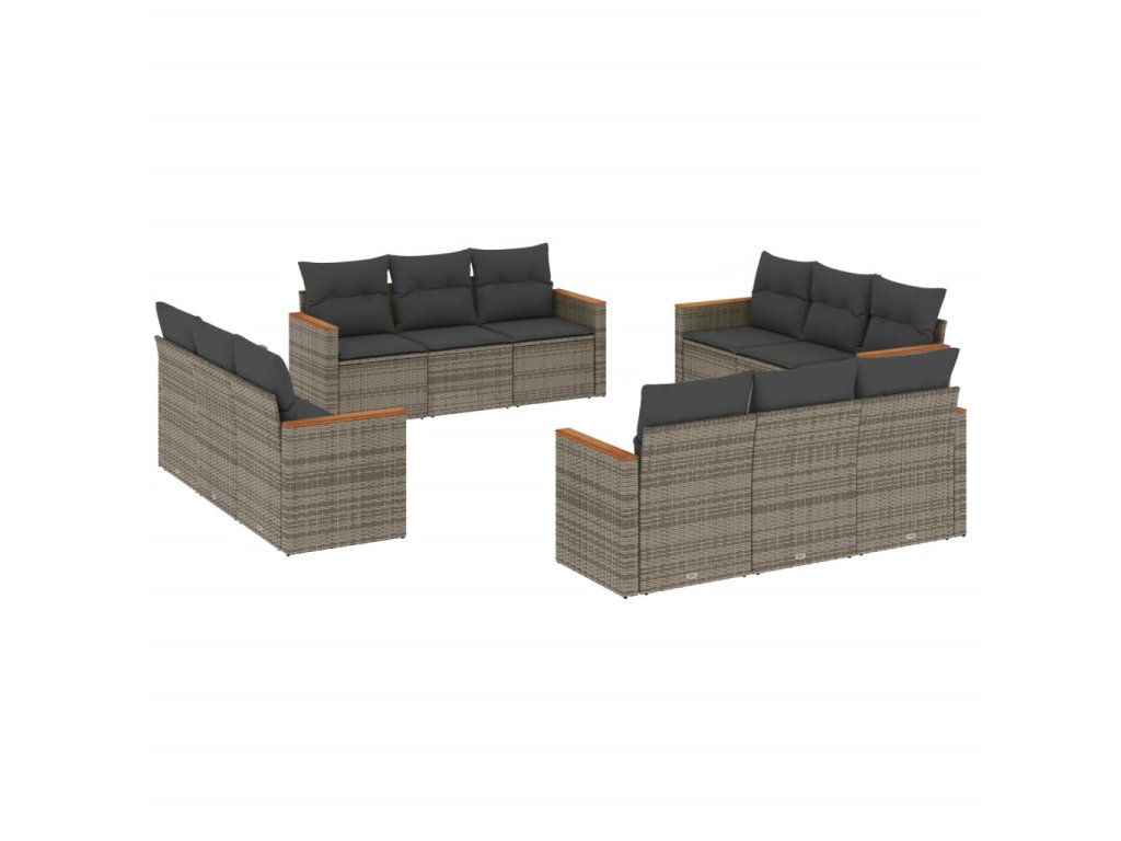 12dílná zahradní sedací souprava s poduškami šedá polyratan 3258238