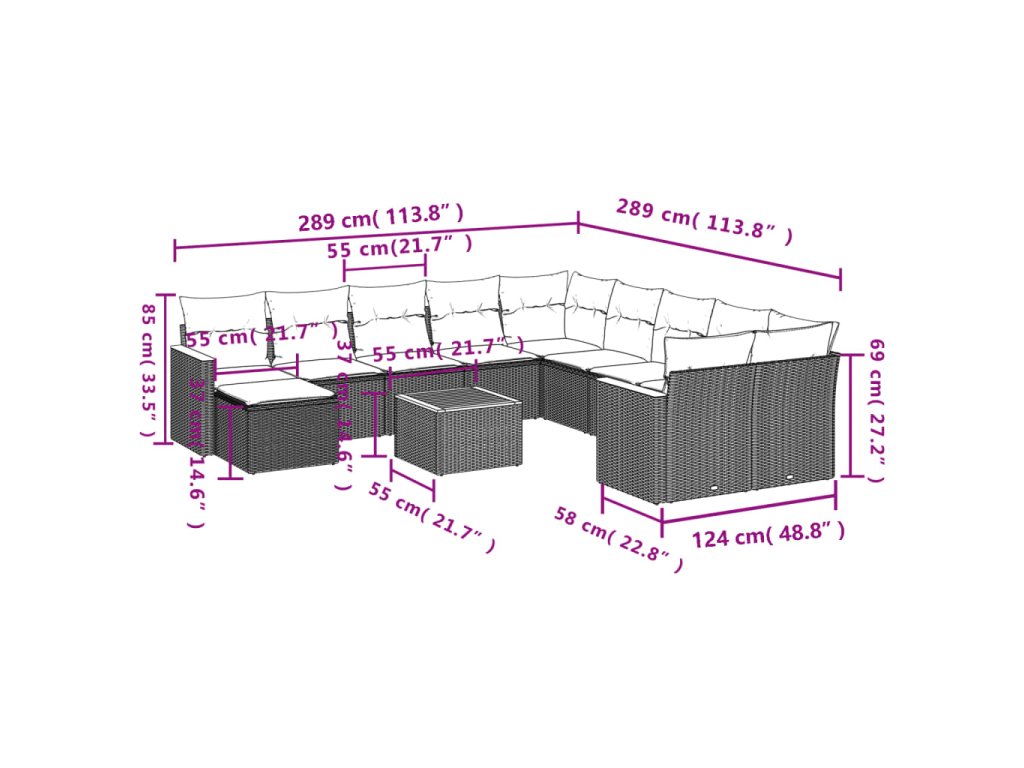 12dílná zahradní sedací souprava s poduškami šedá polyratan 3258980