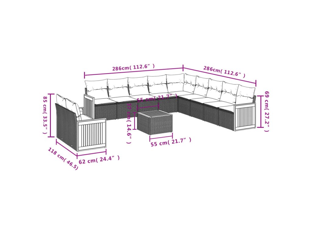 12dílná zahradní sedací souprava s poduškami šedá polyratan 3260220
