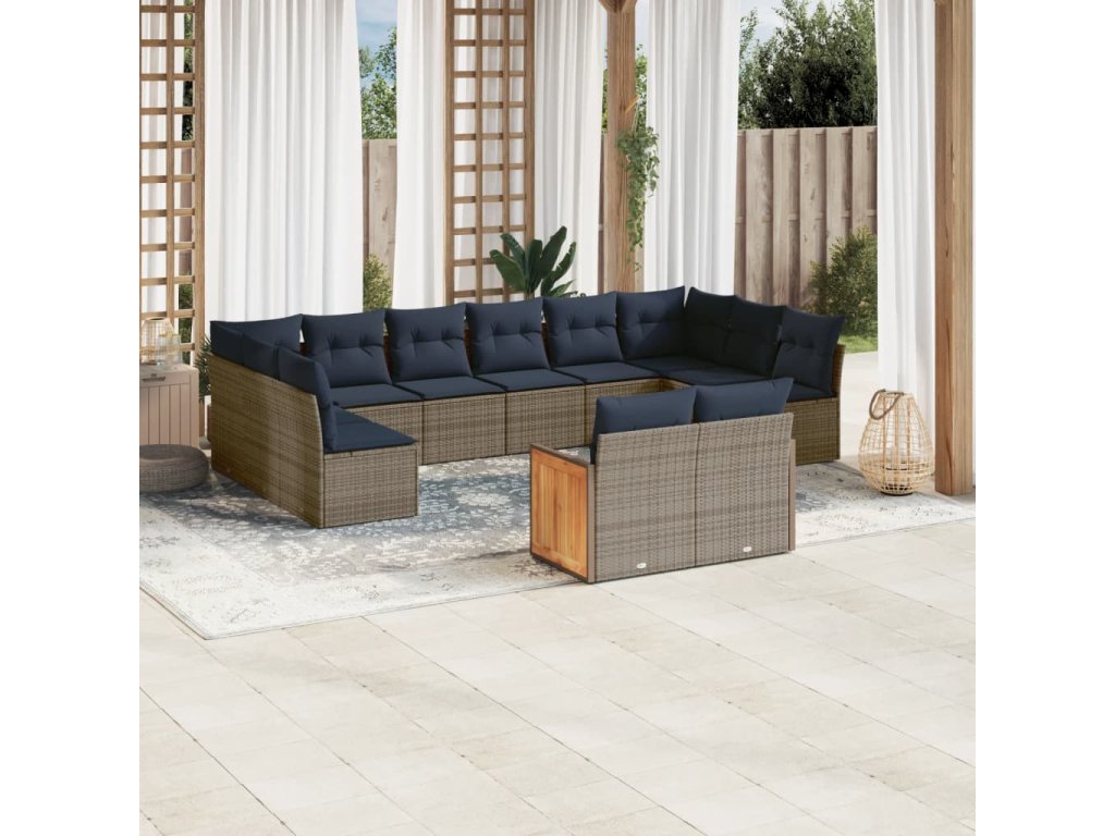 12dílná zahradní sedací souprava s poduškami šedá polyratan 3260528