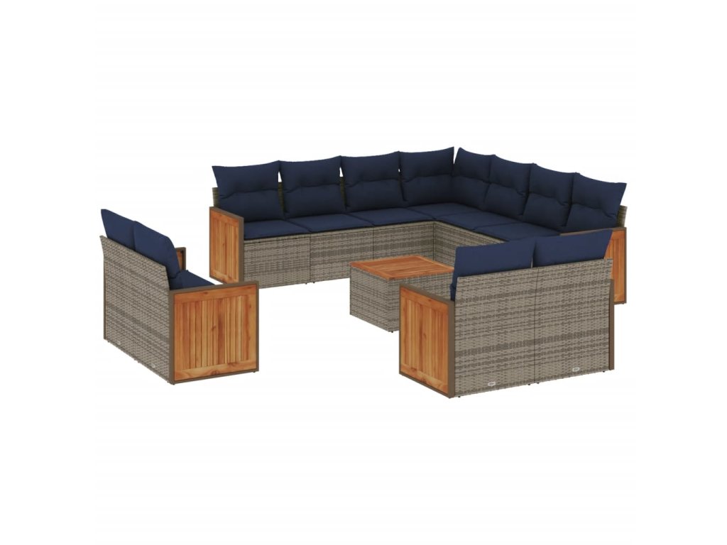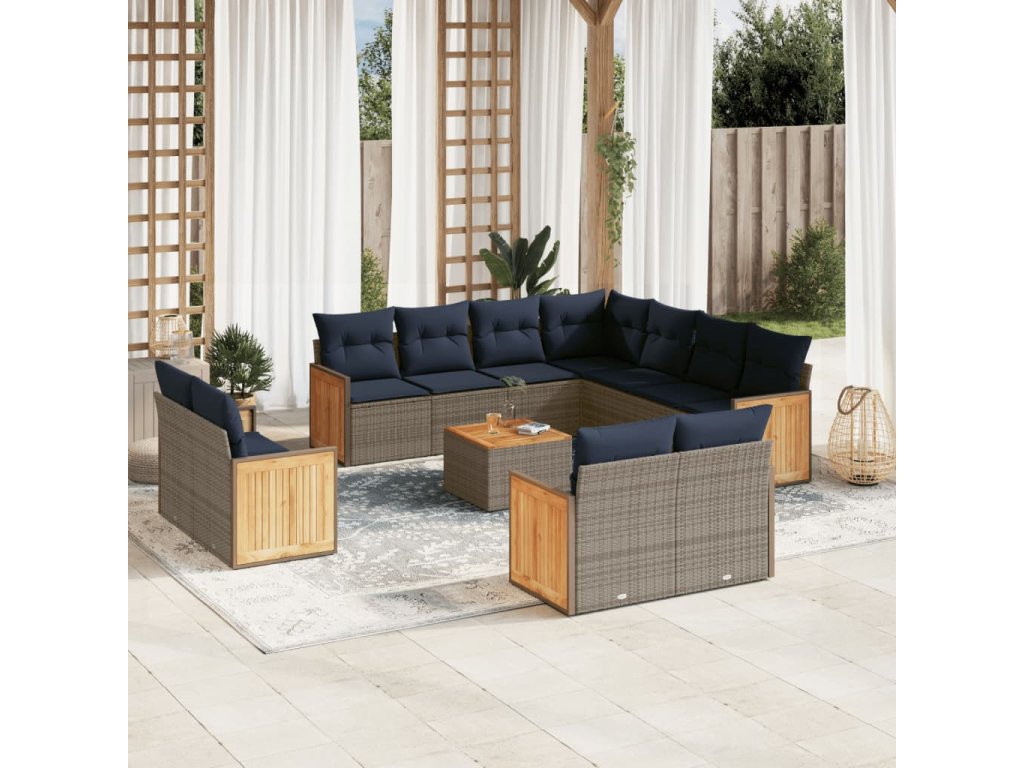 12dílná zahradní sedací souprava s poduškami šedá polyratan 3260591
