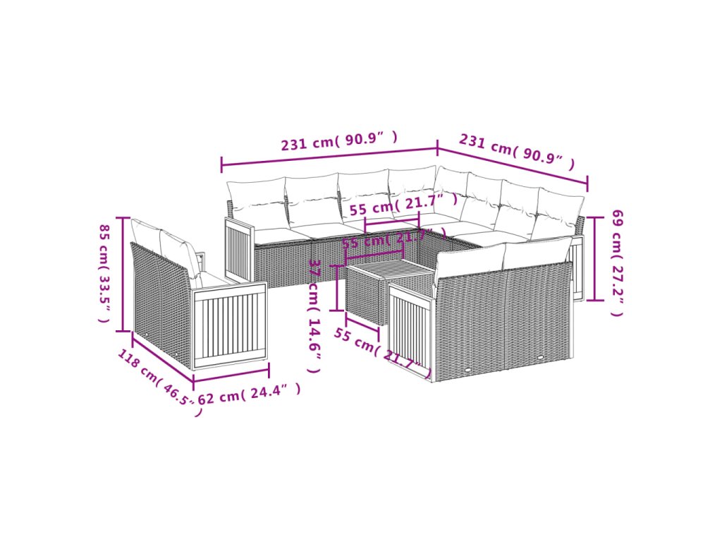 - Modulární design: Tato sada venkovního nábytku se vyznačuje modulární konstrukcí, je tedy zcela flexibilní a lze ji snadno přemisťovat, takže si můžete uspořádat venkovní nábytek dle vašich potřeb.