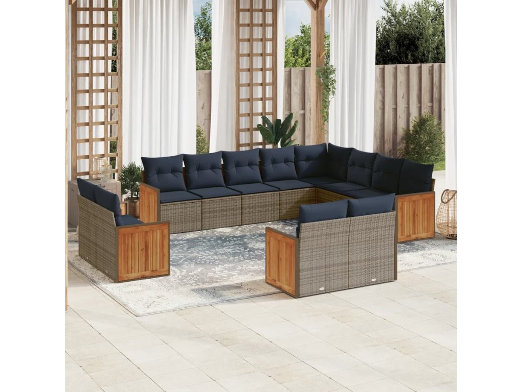 12dílná zahradní sedací souprava s poduškami šedá polyratan 3260598