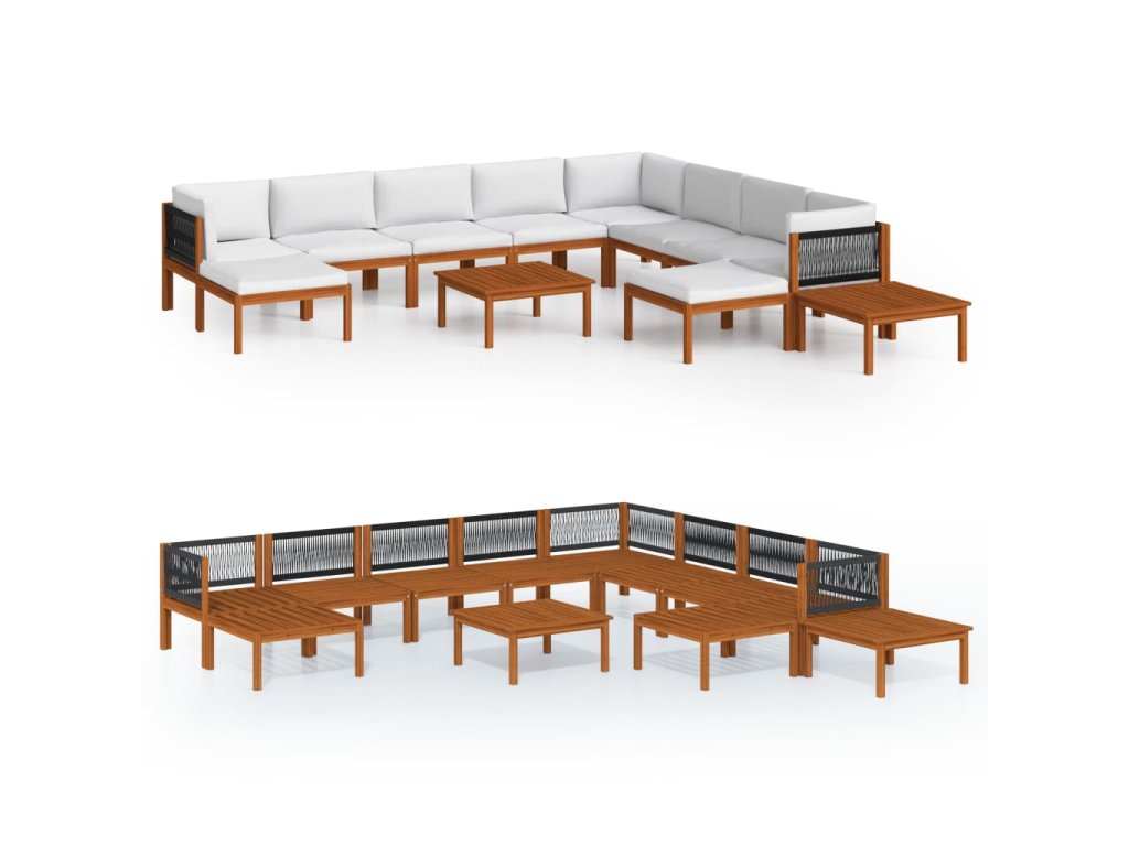 12dílná zahradní sedací souprava s polštáři krémové dřevo akácie a provaz 3057895