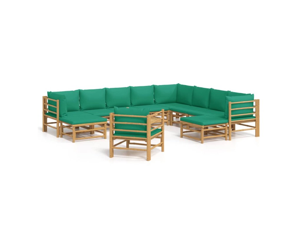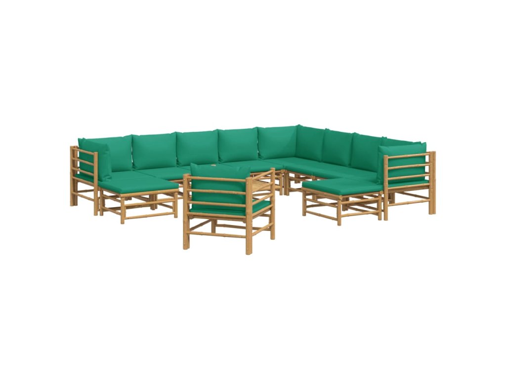12dílná zahradní sedací souprava se zelenými poduškami bambus 3155162