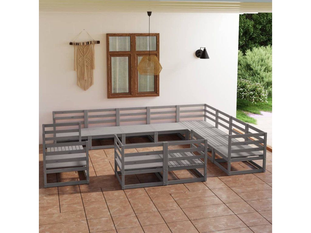 12dílná zahradní sedací souprava šedá masivní borovice 3075956