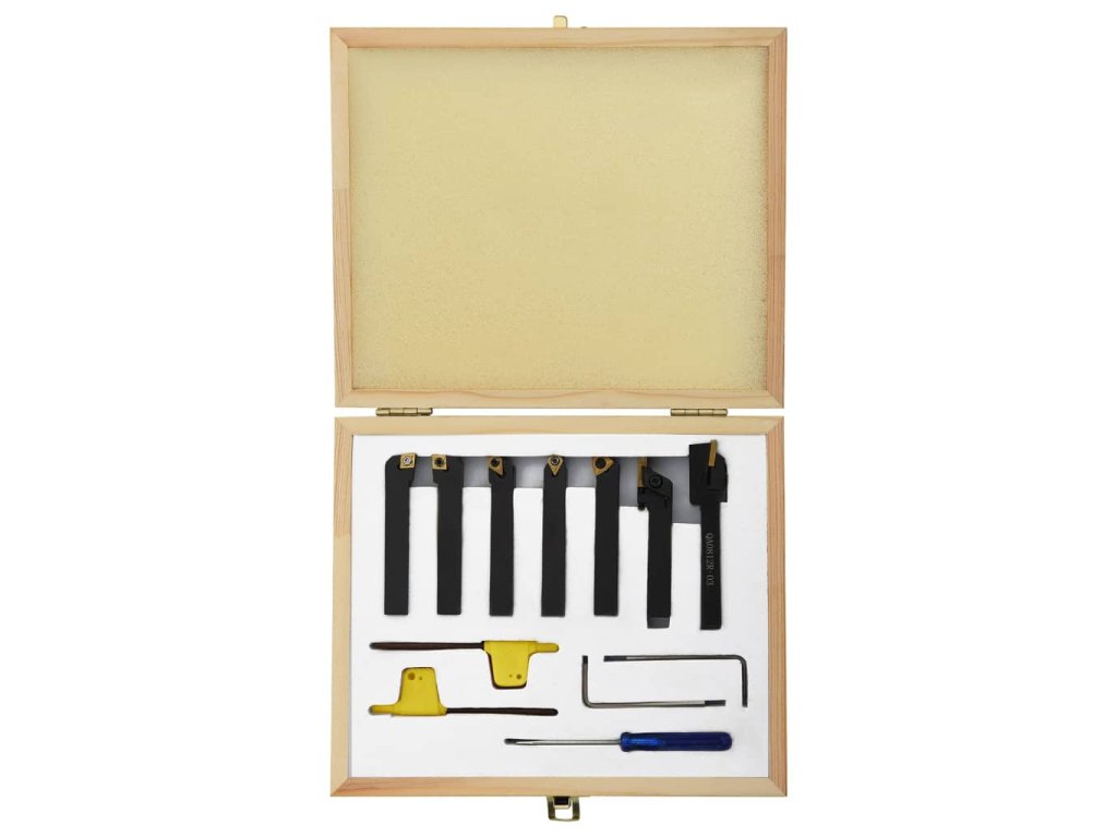 Tato sada 8mm soustružnických nástrojů se skládá z různých nástrojů pro soustružení, frézování a řezání závitů. Tyto karbidové nože jsou vhodné pro soustružení oceli a slitinové oceli. Je to ideální sada pro soustruh.