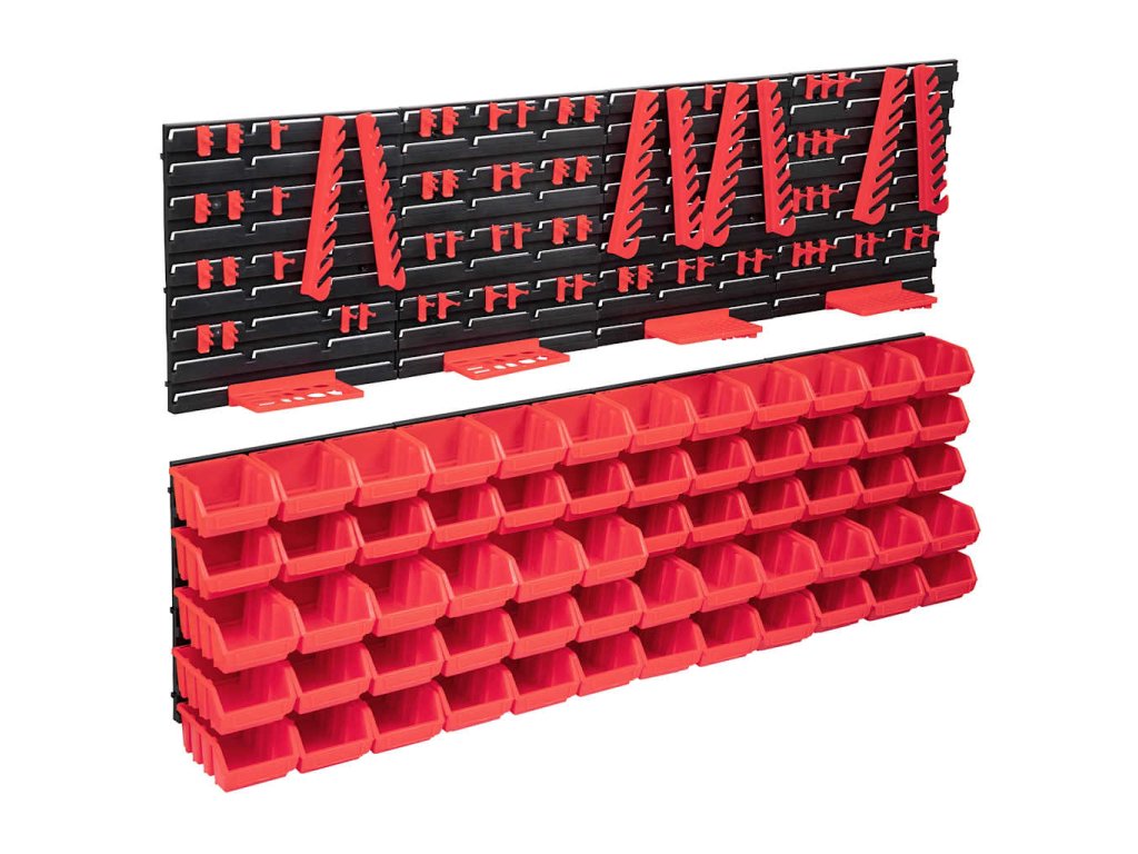 Udělejte si v garáži nebo domácí či pracovní dílně pořádek s touto sadou skladovacích zásobníků s nástěnnými panely.