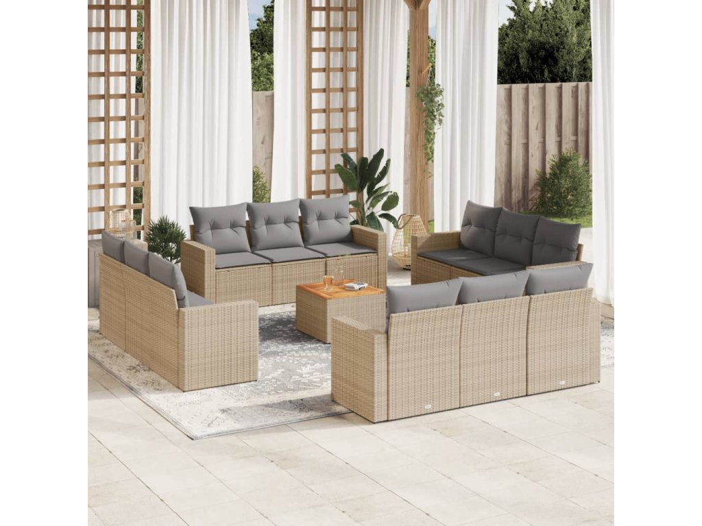 13dílná zahradní sedací souprava a podušky mix béžové polyratan 3256388
