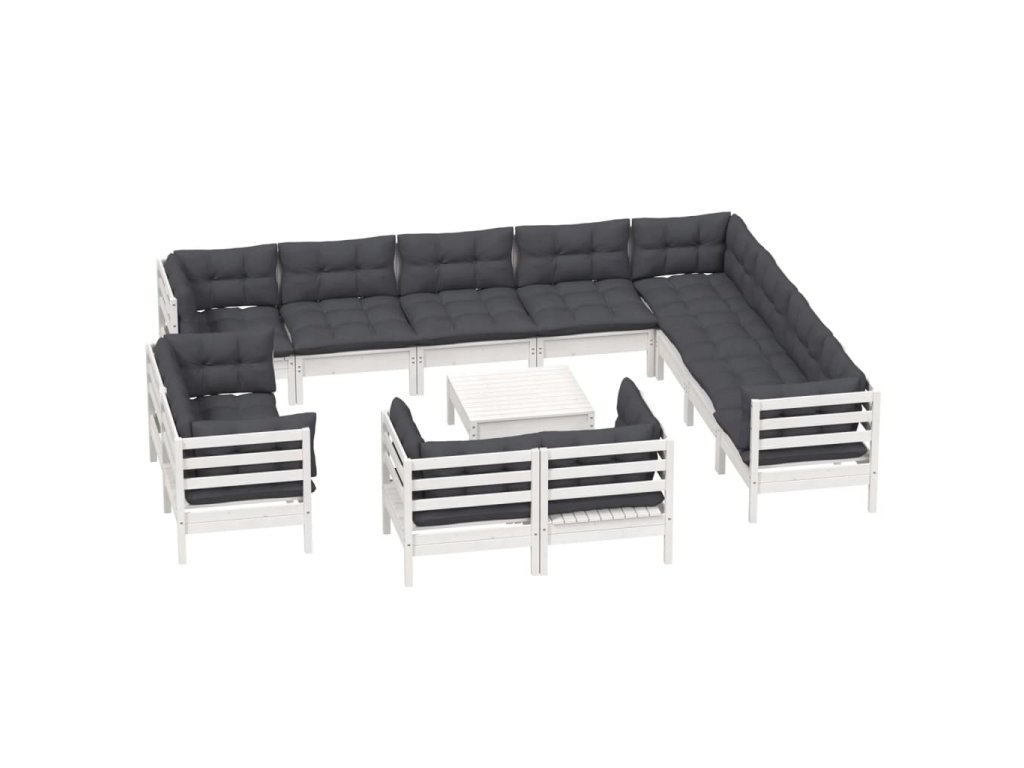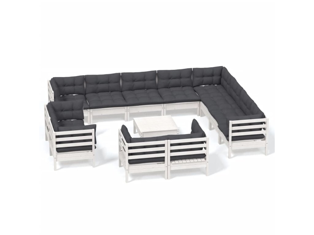 13dílná zahradní sedací souprava podušky bílá masivní borovice 3096954