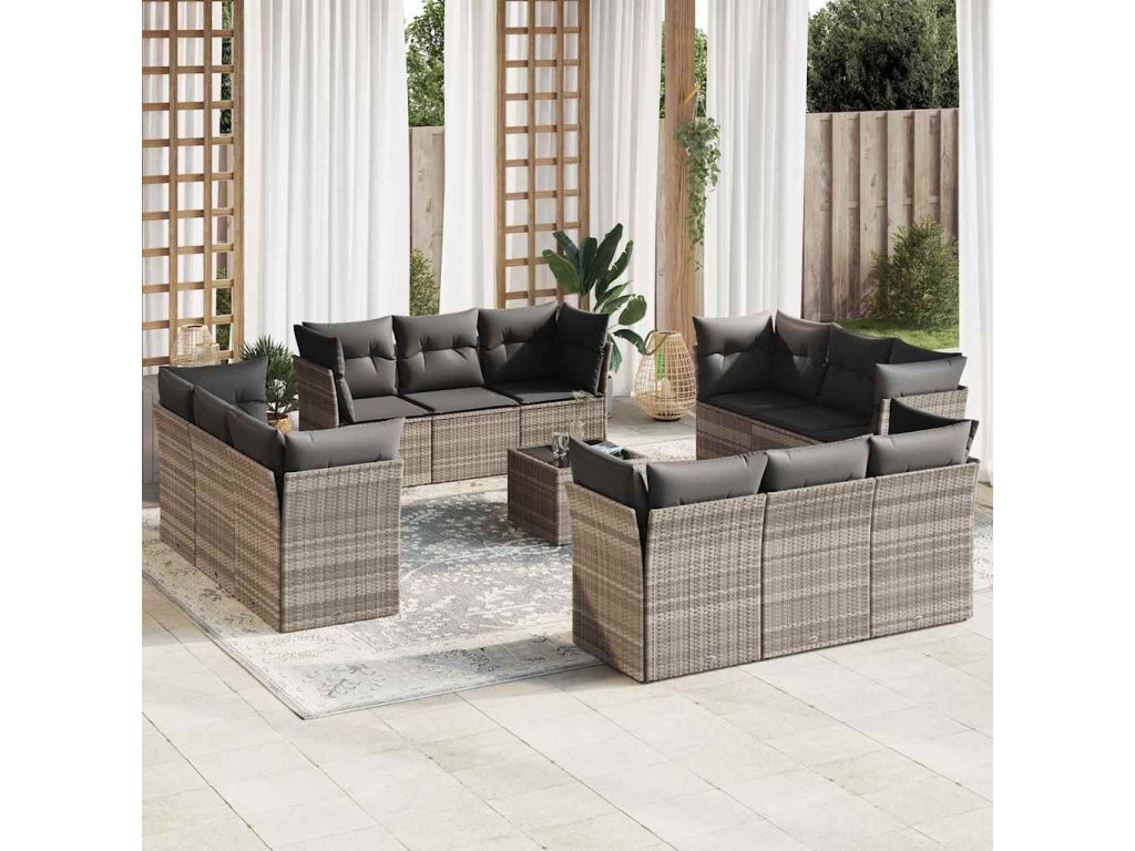 13dílná zahradní sedací souprava podušky světle šedá polyratan 3217342