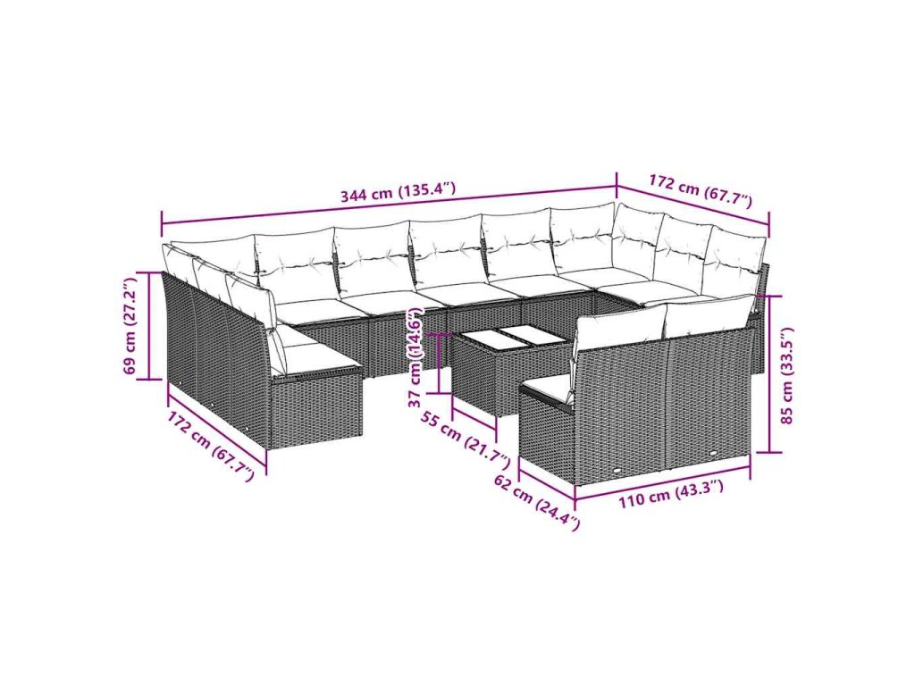 13dílná zahradní sedací souprava podušky světle šedá polyratan 3218382