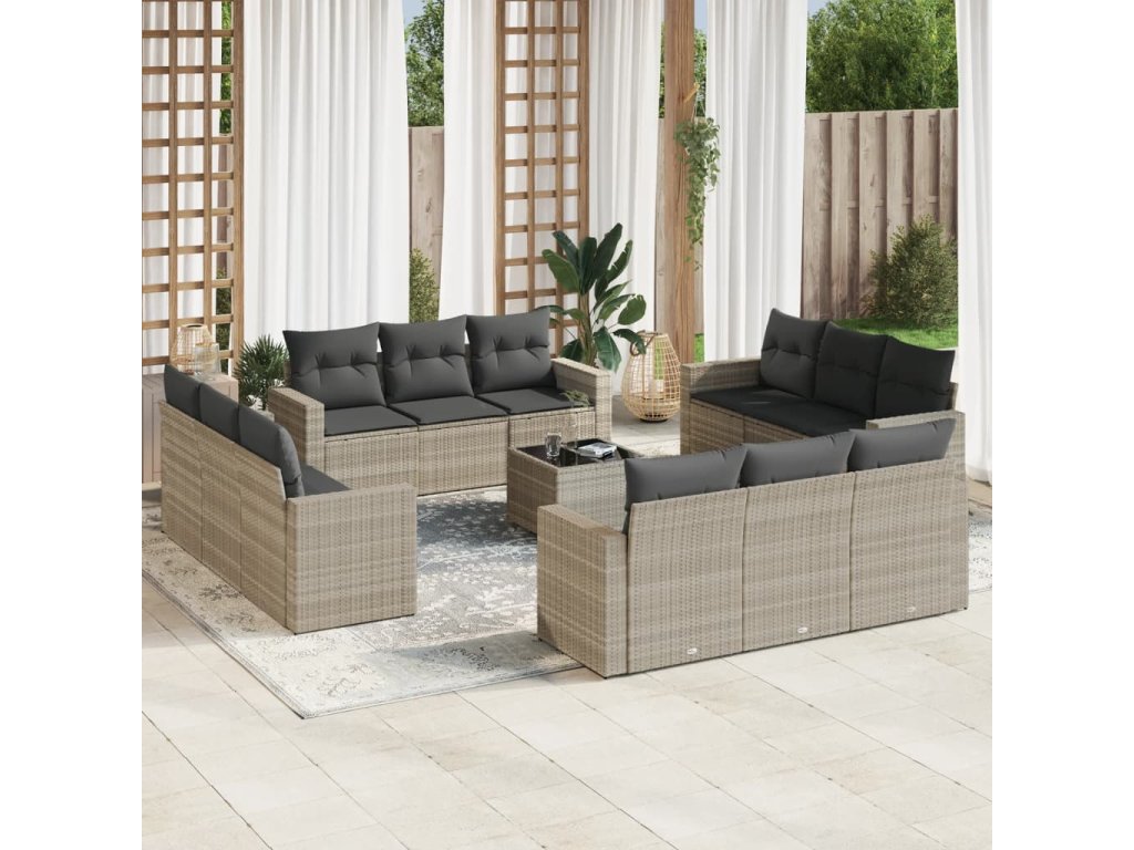 13dílná zahradní sedací souprava podušky světle šedá polyratan 3251119