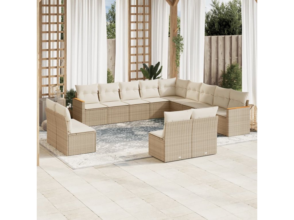 13dílná zahradní sedací souprava s poduškami béžová polyratan 3226485