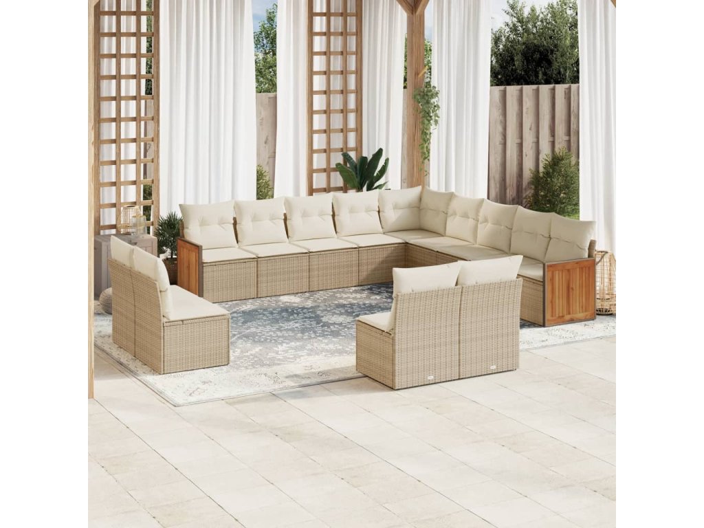 13dílná zahradní sedací souprava s poduškami béžová polyratan 3228165