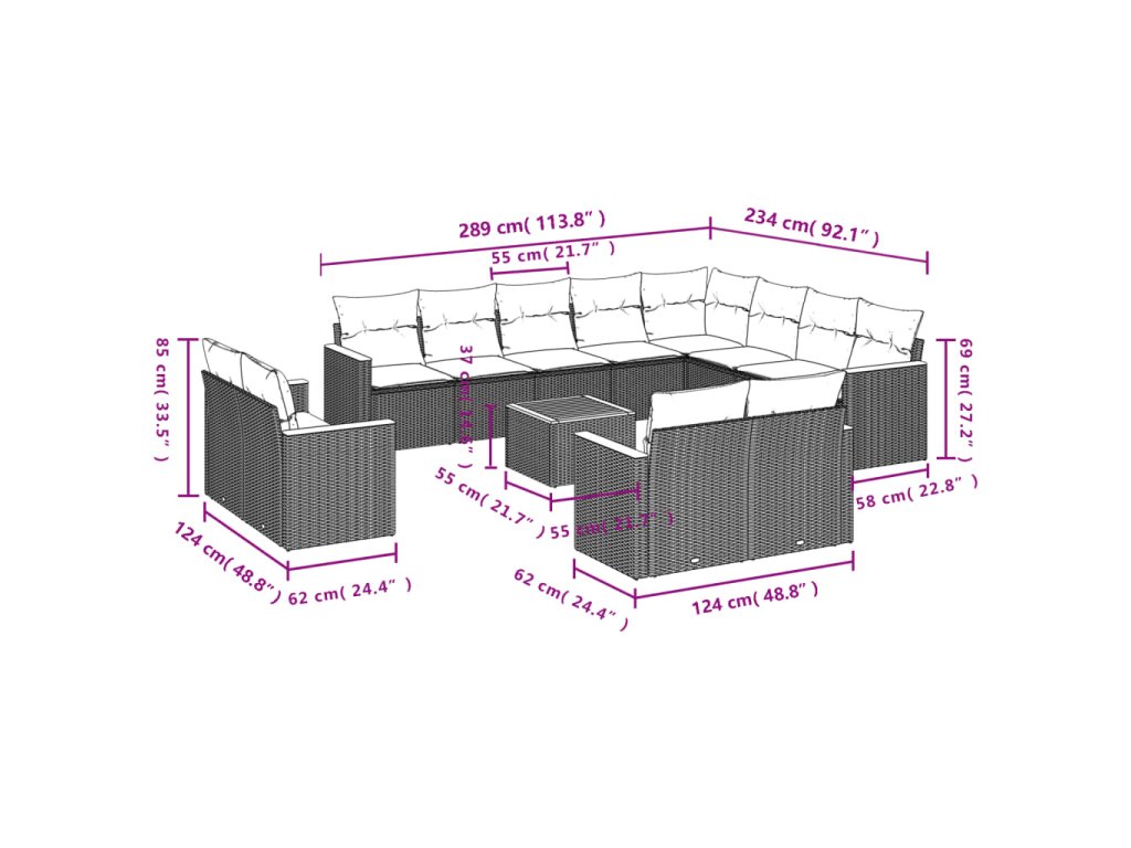 13dílná zahradní sedací souprava s poduškami béžová polyratan 3258922