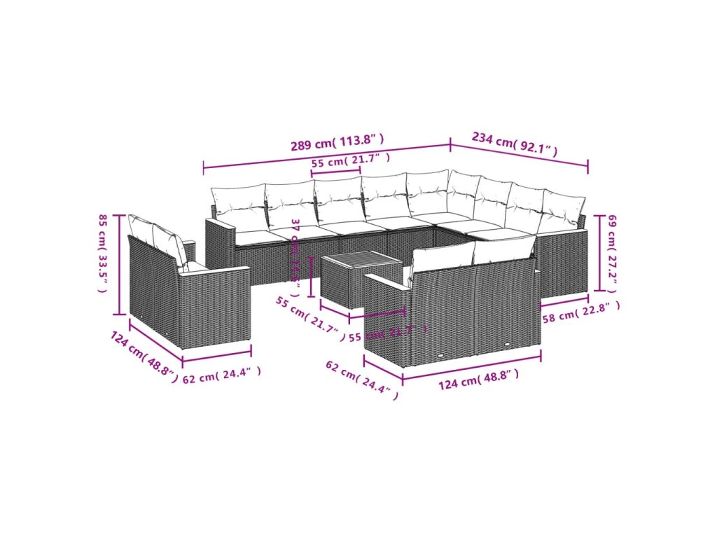 Tato zahradní sedací souprava je dokonalým doplňkem vaší zahrady, terasy nebo dvorku a poskytne vám pohodlné a příjemné místo, kde si můžete povídat s rodinou a přáteli nebo jen tak odpočívat a užívat si pobyt venku.